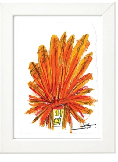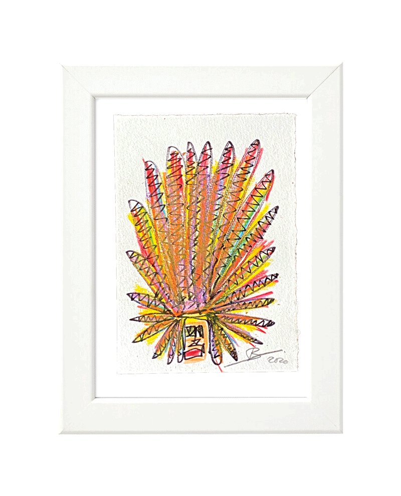 Les coiffes indiennes ont toujours été au centre de son oeuvre. Le personnage est symbole de force, de liberté et de courage. Il est très présent dans le travail de l’artiste. Il est question de couleurs, de connexion à la nature, de beauté des coiffes indiennes mises en avant par un trait singulier.