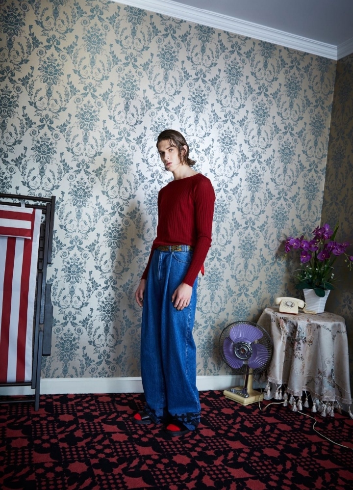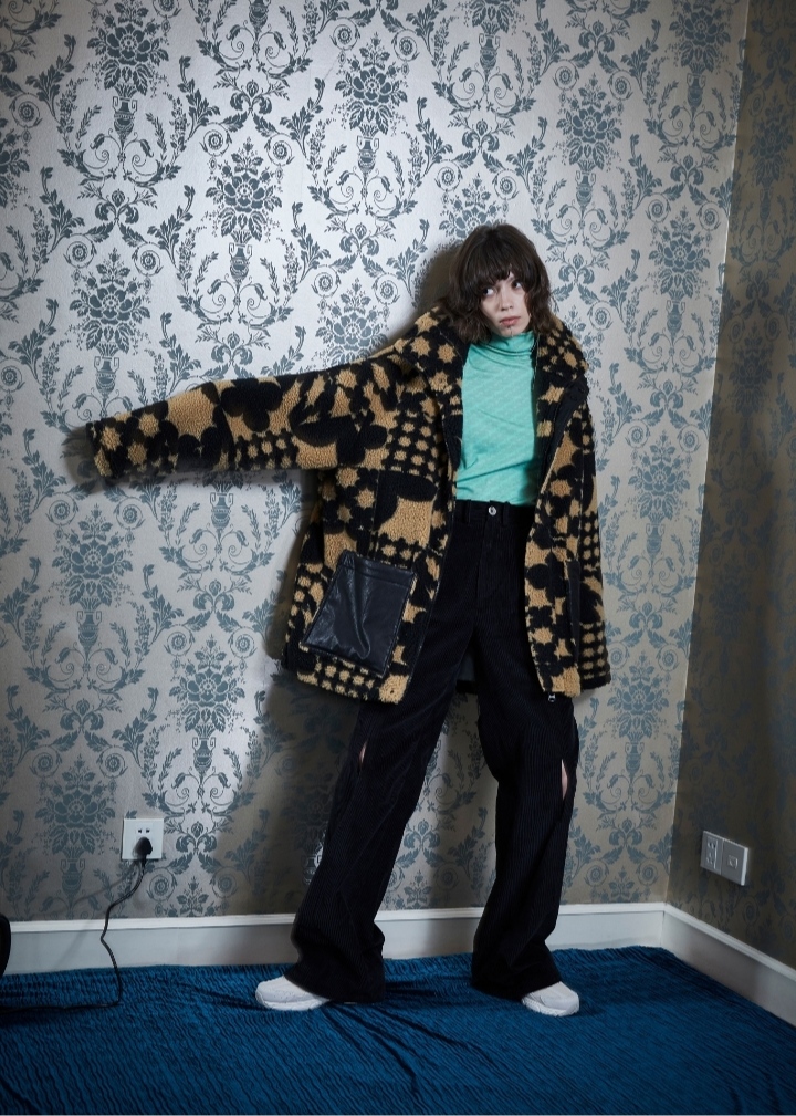 Les looks : costumes, basiques et expressifs avec du denim, des cuirs, des cachemires et des laines. Les imprimés s’inspirent des éléments de rue des scènes locales de Shanghai : rayures, fleurs…