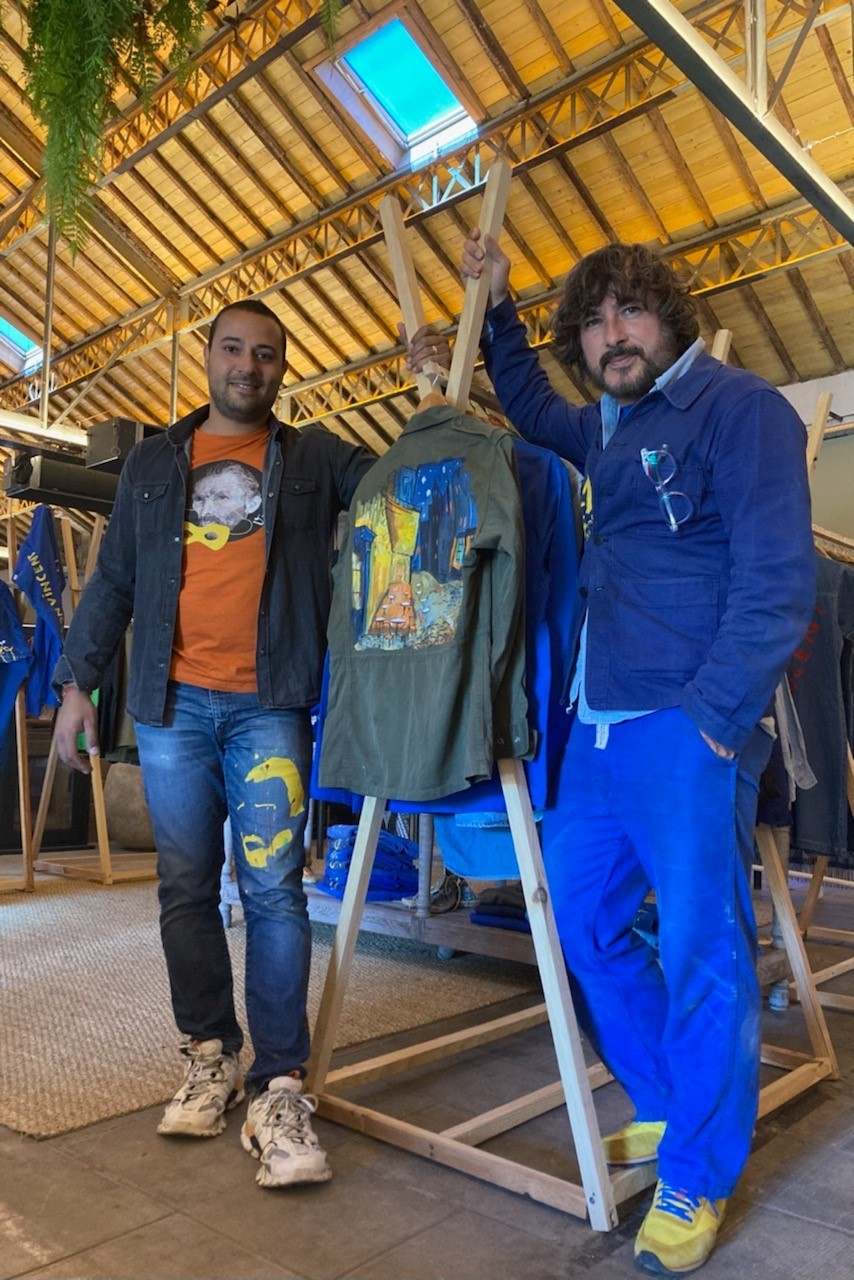 F : Nous respectons les codes de l’époque avec des matières d’avant plus solides. Nous avons rendu le thème plus actuel grâce à ces vêtements en leur donnant une deuxième vie, avec de la peinture et en exploitant l’image de Van Gogh à travers notre marque.