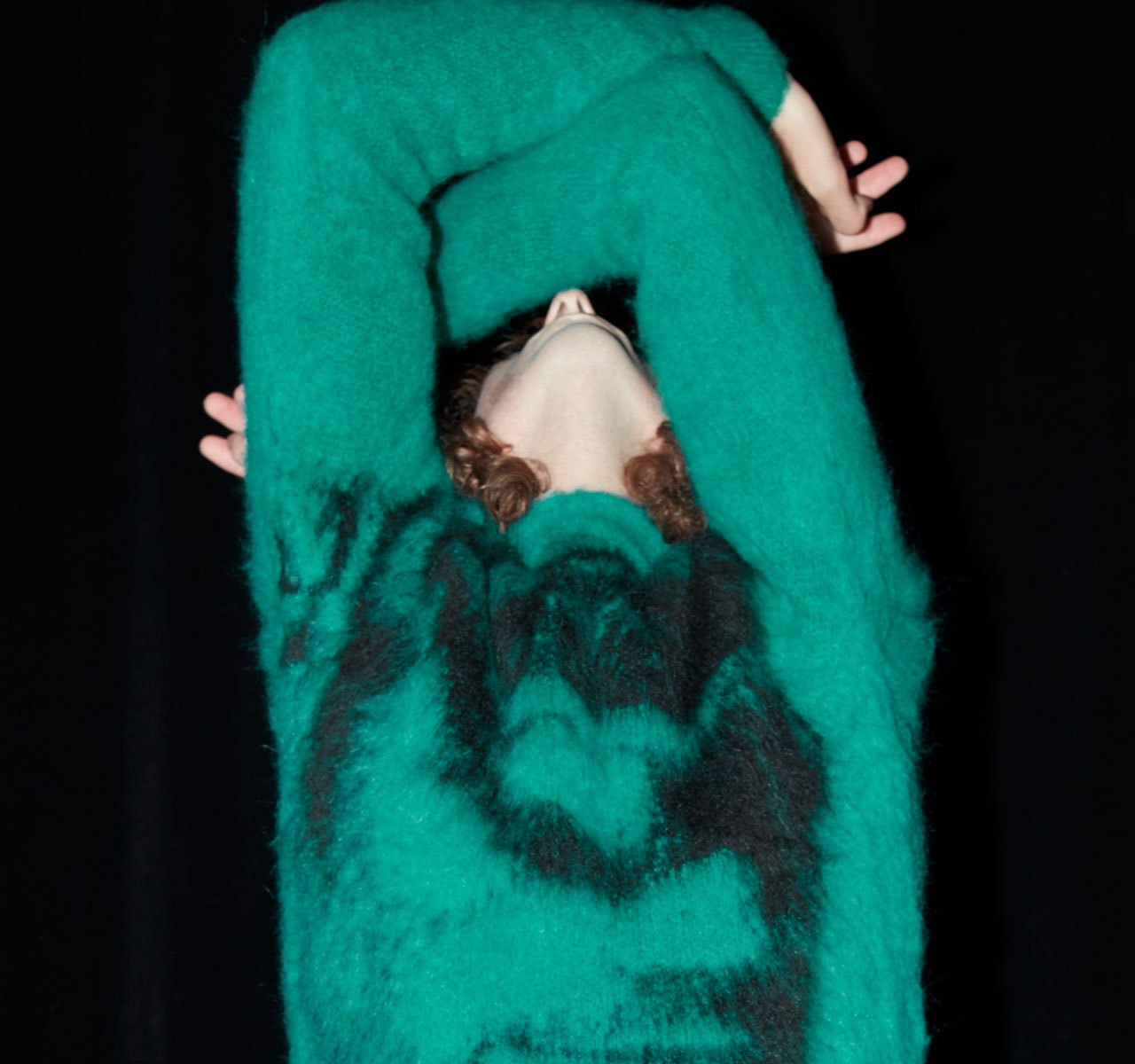 Les pièces sont tissées, étiquetées à la main et fabriquées dans les environs de Barcelone. La matière et la conception font du vêtement une pièce unique et de qualité : kid mohair, fil italien, précision, qualité du dessin reproduit comme une impression de fusain.