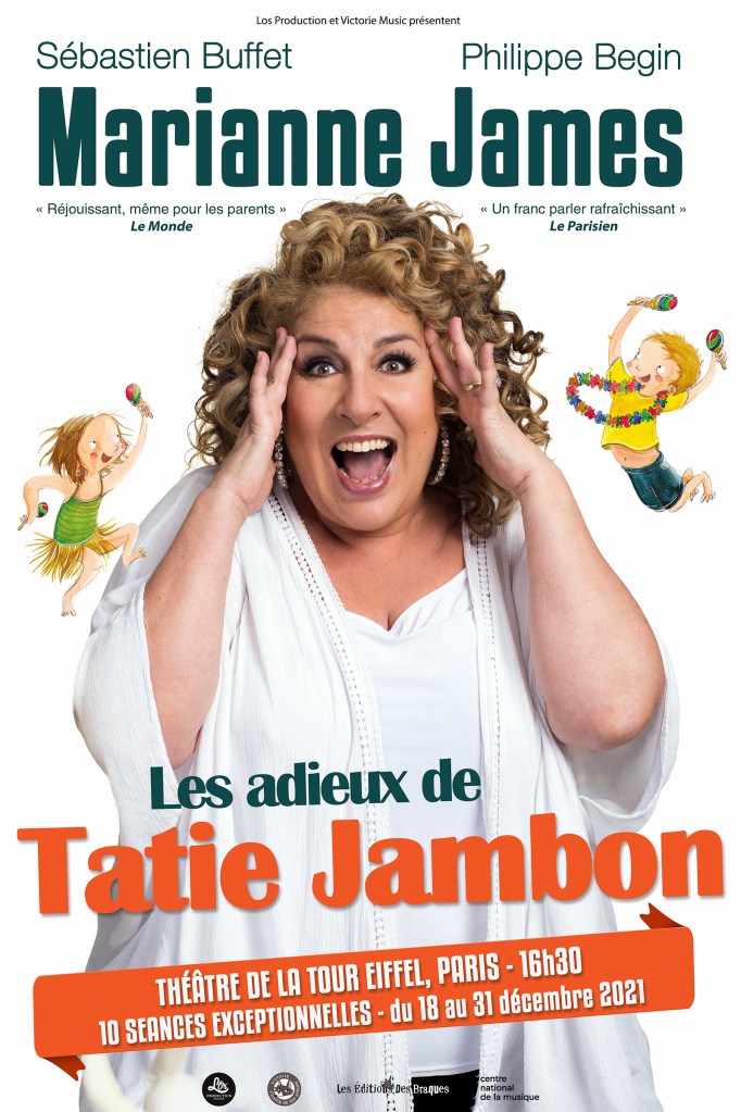 Chanteuse, humoriste, actrice, autrice, compositrice française à succès, Marianne James est à nouveau sur scène pour ce show musical, familial, plein d’humour et de bonne humeur où elle revêt le costume de la super tatie, accompagnée des musiciens Philippe Begin et Sébastien Buffet. Au Théâtre de la Tour Eiffel, à Paris, pour dix représentations, du 18 au 31 décembre 2021.