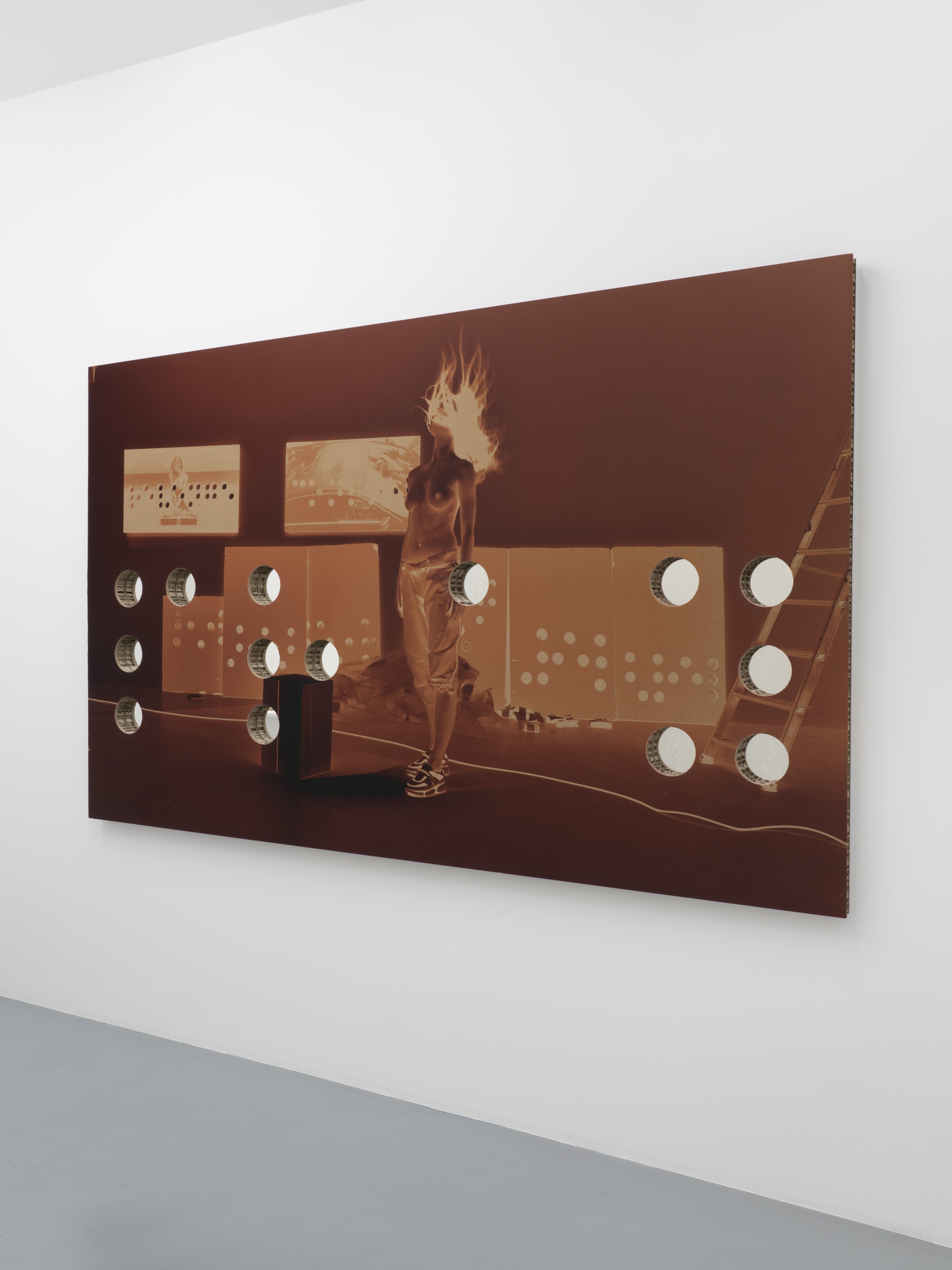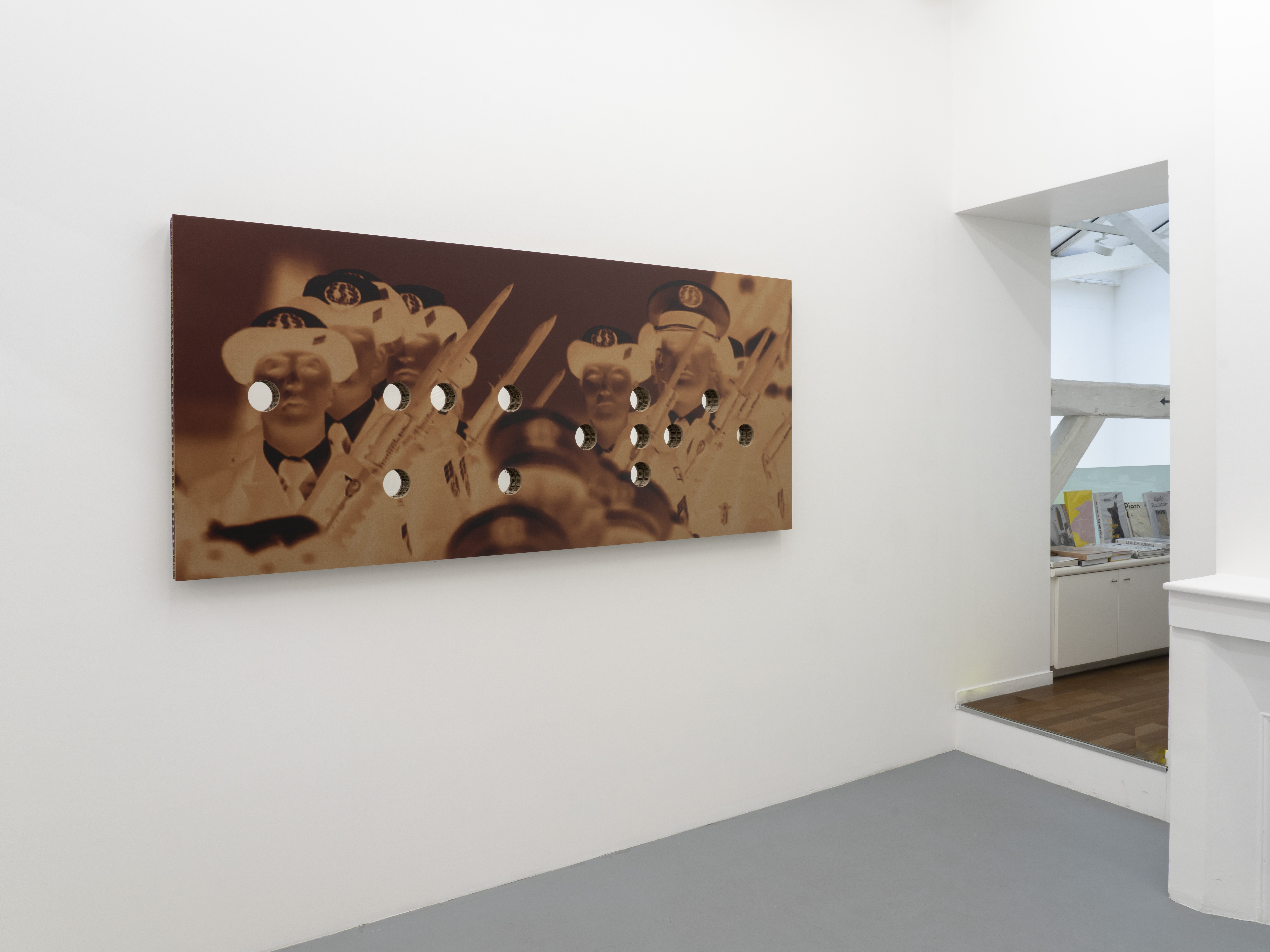 Frank Perrin s’interroge sur l’art et son développement, à l’horizon du capitalisme avancé. Sa recherche visuelle est transversale, avec des photographies, des images construites ou transformées. Pour cette nouvelle série, les images de subversion sont inversées, en négatif, imprimées directement sur des plaques de carton, perforées et imprimées sur miroir. Ces images renvoient ainsi en braille-miroir, la révolte entraînée par le climat général depuis quelques temps dans notre société. Il s’agit de libération.