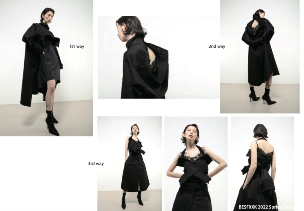 La marque de prêt-à-porter femme et homme contemporaine, Besfxxk a été fondée par les créateurs coréens Jae & Bona. Pour cette saison printemps-été 2022, la collection présente les caractéristiques propres à la marque reprenant des classiques. Les maîtres mots, innovation, durabilité, originalité et déconstruction.