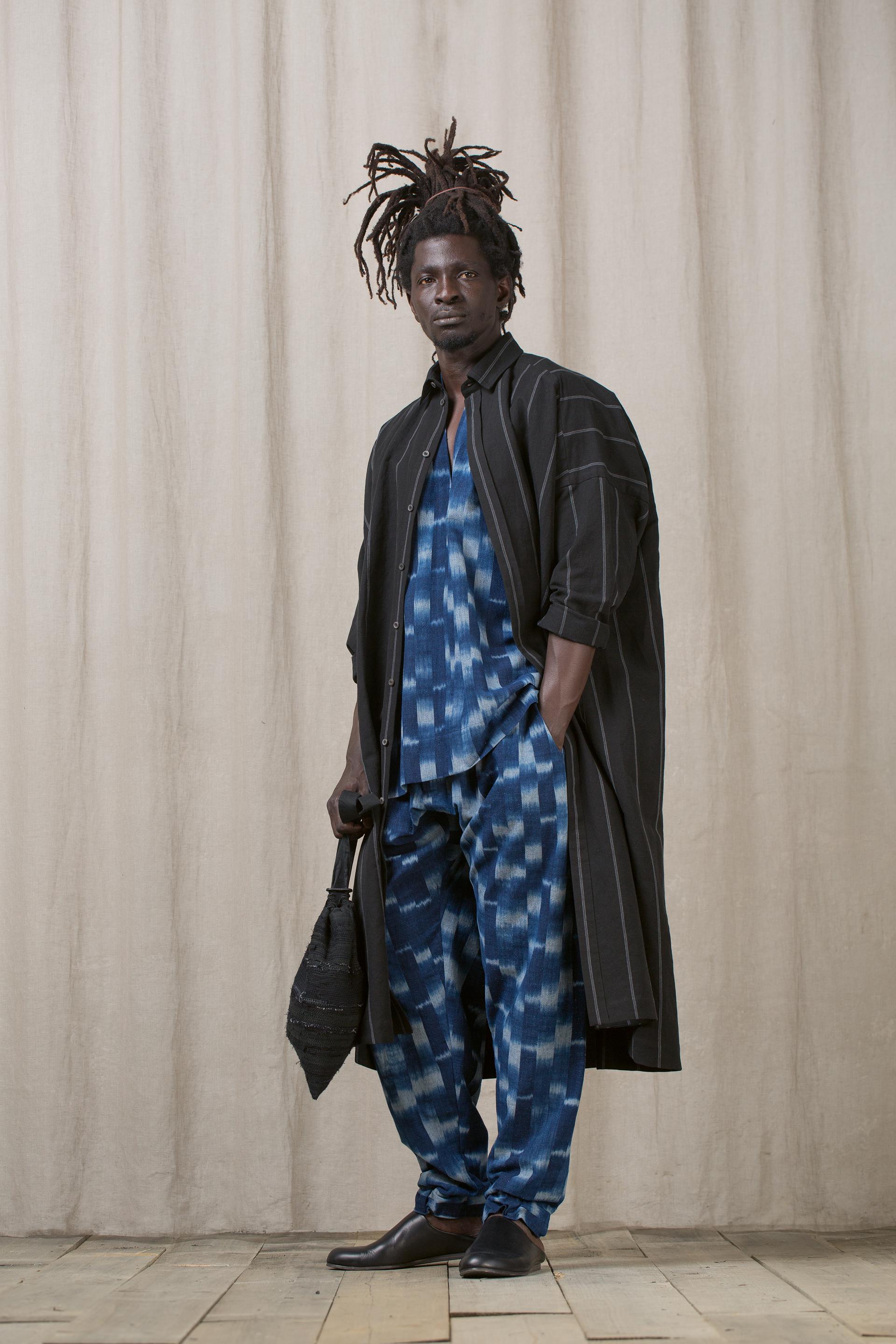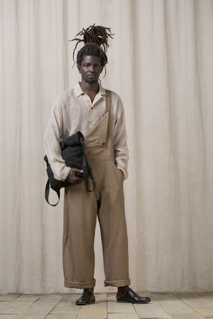 Une des caractéristiques de son style est de reprendre des motifs traditionnels de différentes origines ethnoculturelles dans chaque série qu’il imagine. Puis, il s’attache à supprimer toutes les coutures et minimise le détail pour que le vêtement soit totalement confortable. Ainsi, l’on peut voir dans la collection des pièces amples, faites dans des matières légères et fluides. Les vêtements sont confectionnés dans des tissus de fibres naturelles. Les couleurs varient. Pour cette collection printemps-été le beige est mis en avant, puis vient le bleu, le noir, les imprimés, les tons naturels.