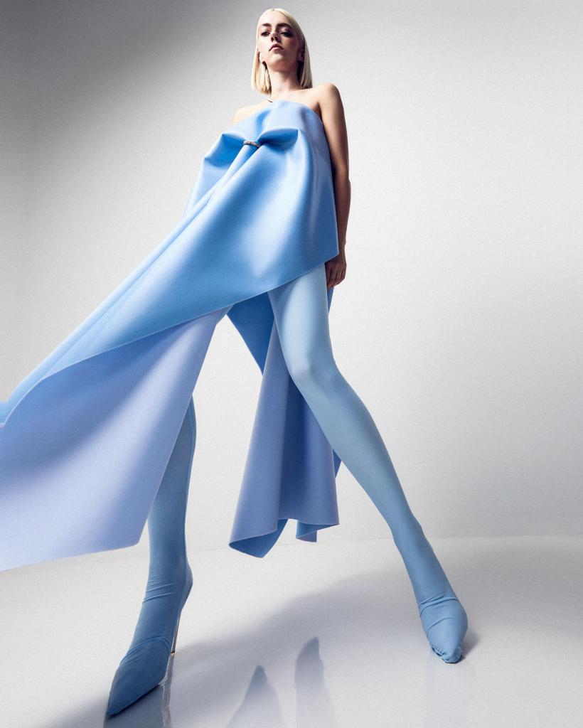 Pour cette collection printemps-été 2023, la créatrice fait une approche expérimentale en utilisant des tissus de développement, en explorant de nouvelles techniques. Elle fait fusionner des combinaisons de tissus non conventionnelles, transforme le matériau en structure nouvelle. Les silhouettes sont sculpturales et authentiques. Les coupes sont géométriques, les tenues de soirée modernes et structurées.