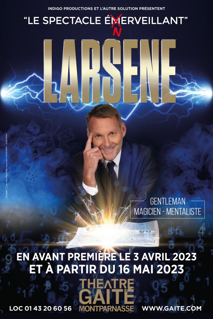 Larsene, artiste, gentleman, magicien, mentaliste n’en est pas à son premier tour. Après de nombreux show remarqués, il revient avec un spectacle hors du commun. Du 16 mai au 28 mai 2023, au Théâtre de la Gaîté Montparnasse.