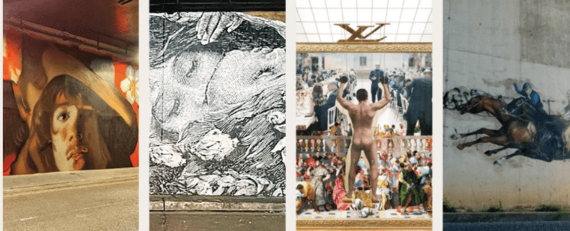 Le street-art, art de la contre-culture, relie différents courants. Il s’imprègne de la culture pop, des chefs-d’œuvre de l’histoire de l’art, placés pour la plupart actuellement au musée du Louvre, à Paris.