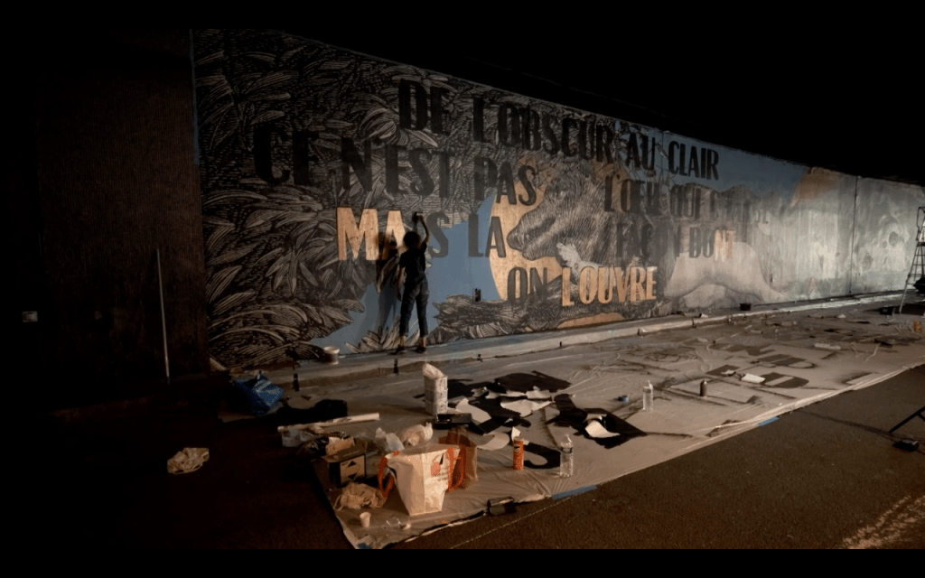 FB: L’idée de faire un documentaire sur le street-art vient du livre, « Sous le street-art, le Louvre », écrit par Cyrille Gouyette. Ce livre met en relation les artistes du street-art avec les arts classiques du Louvre. À la lecture de ce livre, nous avons imaginé la possibilité de faire un documentaire. Nous l’avons proposé au programme Libre-Court de la chaîne France 3 qui nous a suivit.