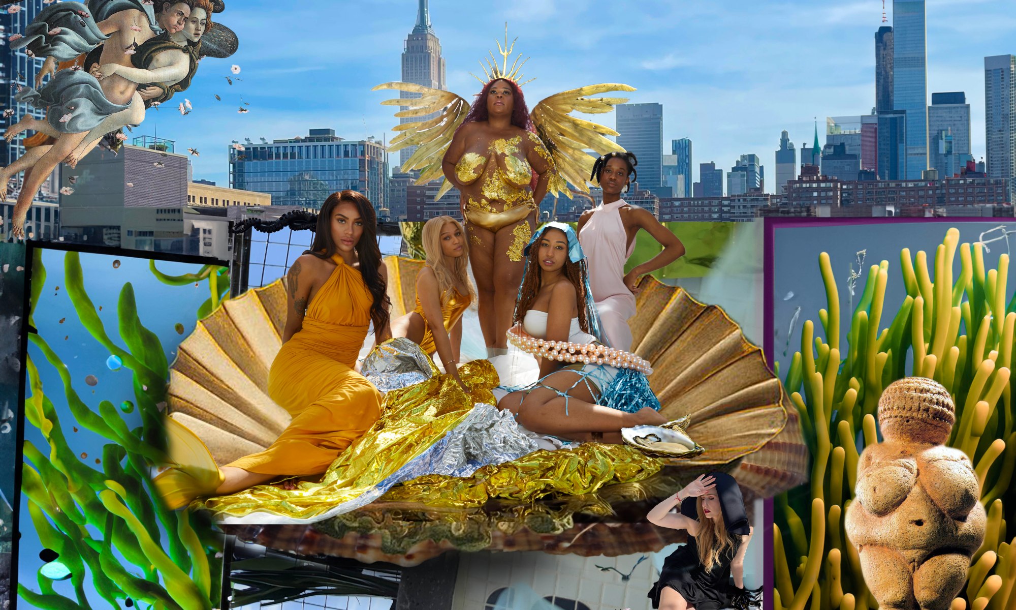 Dans les photos, les femmes sont parfois plus grandes que ces grands buildings New-Yorkais. La ville représente ce que l’homme a créé et j’ai voulu montrer encore plus grand, que l’esprit féminin va voler au dessus de tout. Il est plus fort. Plusieurs Vénus composent ces tableaux. La deuxième est inspirée de Botticelli.