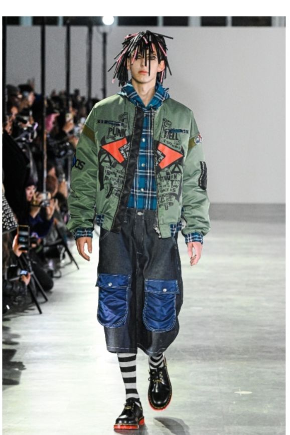 Le créateur puise dans ses souvenirs, la ville de Tokyo, fin des années 2000, où le vêtement est un moyen d’expression pour la jeunesse rebelle. Il réutilise avec beaucoup de créativité les vêtements d’occasion, dénichés dans la boutique A Store Robot, basée à Tokyo, boutique avant-gardiste qui introduit la culture de la mode londonienne, avec des pièces qui reproduisent des vêtements de Seditionnaries, marque emblématique du mouvement punk dans les années 70 (Vivienne Westwood).