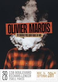 Olivier Marois donne à sa musique une couleur pop-folk, avec guitare et voix comme instruments principaux, puis piano et quelques sons électros. « Tu sauras pas quoi faire de moi » est son dernier album. Il se produira, avec son groupe, plus guest, au Solo Théâtre, à Paris, le 24 septembre 2025.