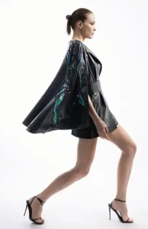 La transparence est présente dans cette collection, composée de cuir stretch, matière emblématique de la maison. Une majorité de looks sont en noir, puis en blanc, mais la collection se teinte également de couleurs vives et pop, comme le fuchsia. Cette collection est marquée par une quête de liberté que l’on retrouve dans les formes et dans les associations.