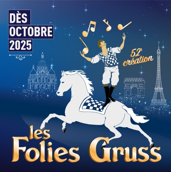 Alexis Gruss, le célèbre cirque, présente sa 52ᵉ création. Cavaliers, saltimbanques et acrobates animent le spectacle au rythme d’une musique live dans un show traditionnel intitulé « Les Folies Gruss », à Paris 16ᵉ. Le spectacle se tient sous la direction artistique de Stéphane Gruss, du 19 octobre 2025 au 29 mars 2026.